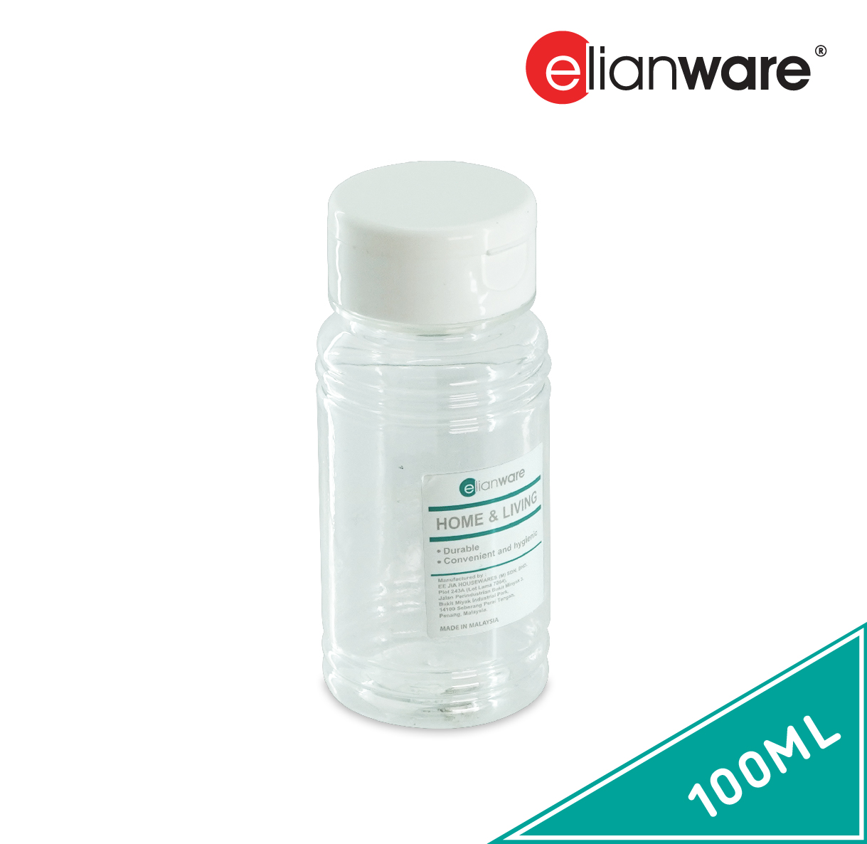 ELIANWARE 100ml Round Pepper Bottle, Spice Sugar Salt Herb Shaker Jar Storage Bottle, Botol Sos & Rempah, E-911/WH